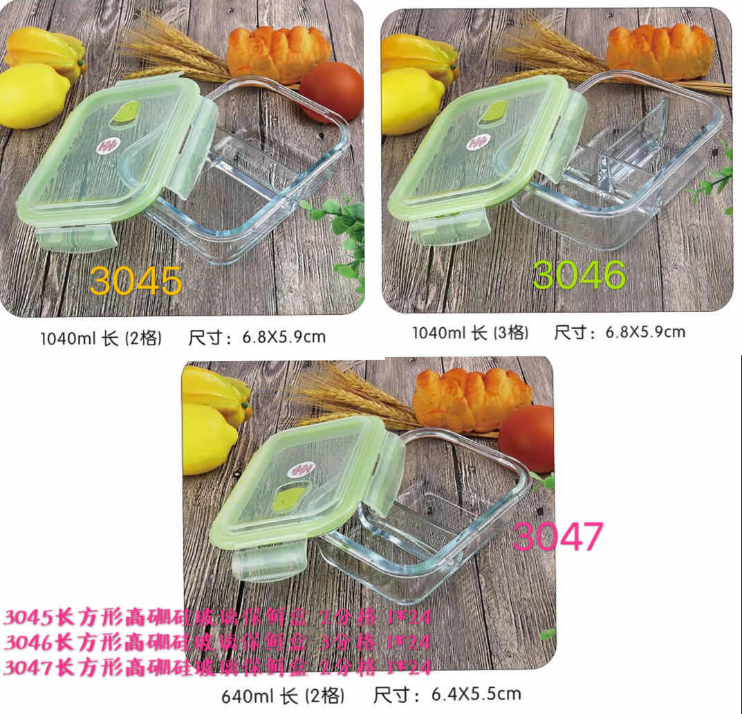 3045长方形玻璃保鲜盒2分格 / 3046长方形玻璃保鲜盒3分格 / 3047长方形玻璃保鲜盒2分格